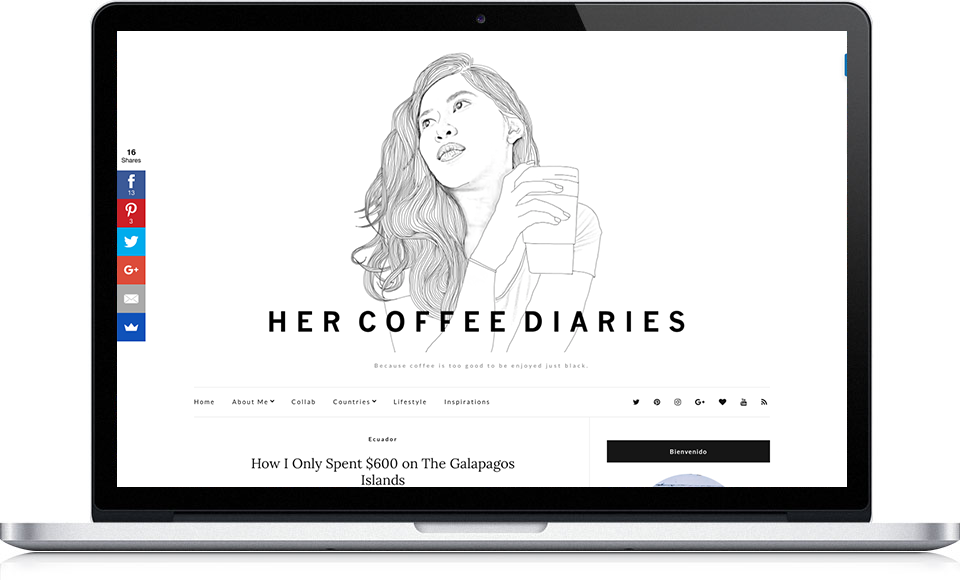 Portrait illustration for a blogger. Her photograph was turned into a illustration using both hand drawing and photoshop techniques. It is used as the main header for her blog and for other marketing and branding material.